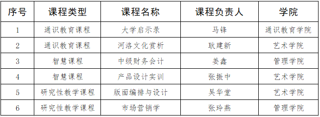 根据《河南省教育厅办公室关于2025年度河南省本科高校精品课程建设申报工作的通知》(教办高〔2025〕200 号)要求,在各单位申报推荐的基础上,经学校教学指导委员会综合审议,我校拟推荐《大学启示录》等6门课程参与省级精品课程评选,现予以公示。