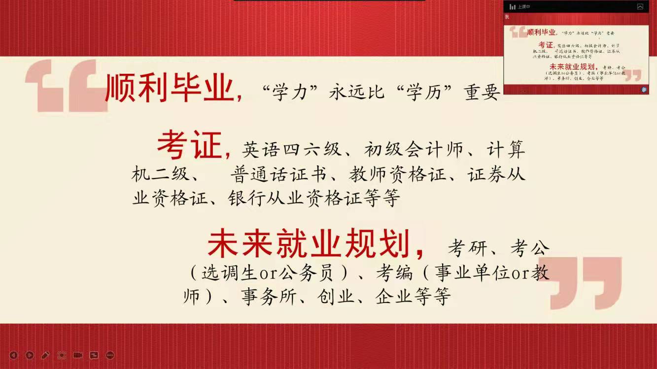 为进一步提升我院学生对当前就业环境和就业现状的了解与认知,充分发挥优秀校友的榜样力量,帮助学生树立更加清晰准确的就业择业观,了解现阶段应注重和培养的专业技能和专业素养,提高学生的职业生涯规划意识,做实做深做细学院就业创业工作。由招生就业处主办、会计学院承办的校友讲坛第二期于3月18日在钉钉直播群线上举办。本次讲座由我校14级审计学专业优秀毕业生罗倩主讲,我院部分辅导员老师及21级、20级学生代表共同参与了此次活动。