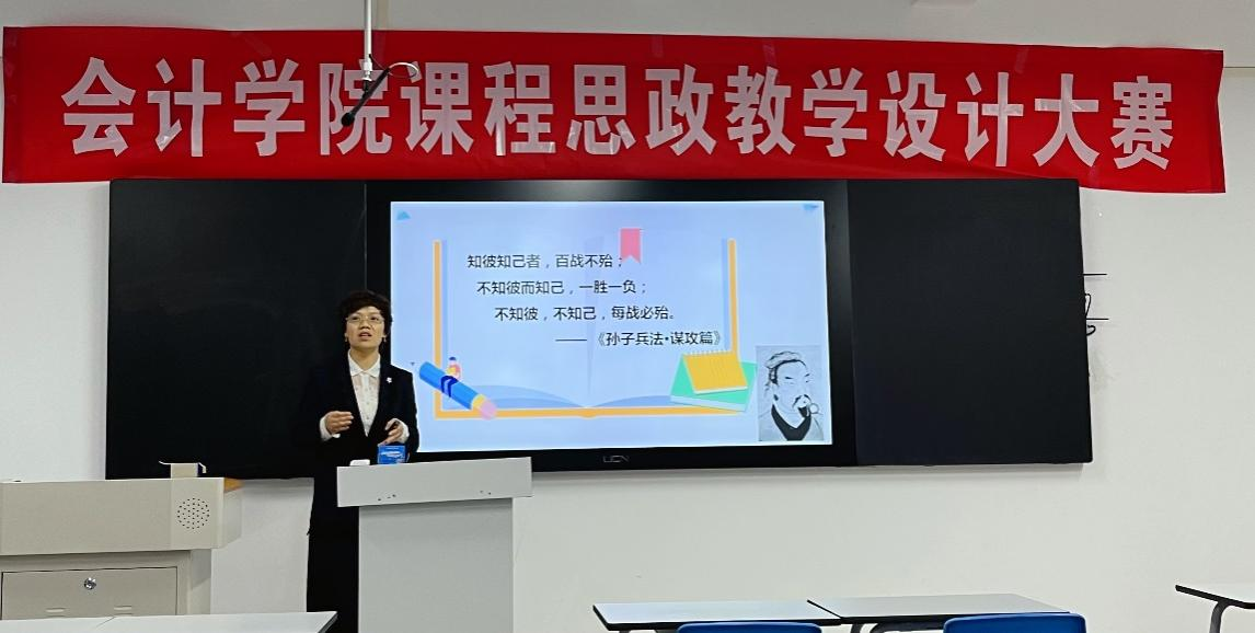 充分发挥课程思政育人功能,提升教师课程思政育人的能力,检验课程思政育人成效,4月14日下午,会计学院广恩楼G208举行了课程思政教学设计赛。本次比赛由院长祝利芳、副院长刘金金、胡珍珍和白静老师担任评委,赫晓霞、曹琦、郭毅飞、郝晨君和武佳莉五位老师参赛。
