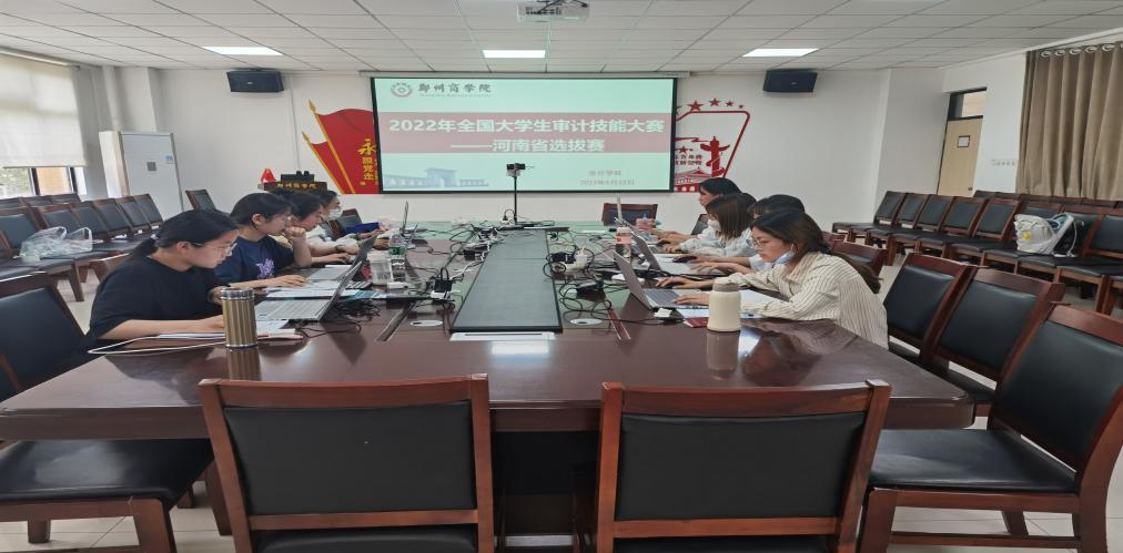为全面贯彻我校“商科、应用型、国际化”人才培养特色,推动本科教育新文科建设。会计学院秉承“以赛促学、以赛践学、教赛结合”的育人理念,于5月22日组织19级、20级审计学专业8名同学组织两支参赛队伍,参加2022年全国大学生审计技能大赛河南省选拔赛,郝晨君老师、赵明雨老师、翟文佼老师和兰洁老师作为专业指导老师带队比赛。