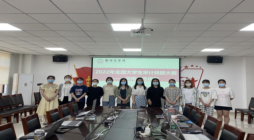 为全面贯彻我校“商科、应用型、国际化”人才培养特色,推动本科教育新文科建设。会计学院秉承“以赛促学、以赛践学、教赛结合”的育人理念,于5月22日组织19级、20级审计学专业8名同学组织两支参赛队伍,参加2022年全国大学生审计技能大赛河南省选拔赛,郝晨君老师、赵明雨老师、翟文佼老师和兰洁老师作为专业指导老师带队比赛。