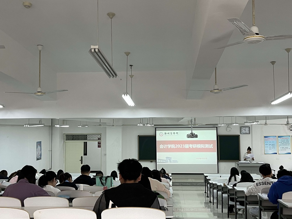 为做好会计学院考研学子的考前服务工作,帮助学生摸清自己学习水平,明确考研志愿,9月27至28日,会计学院在广恩楼104、114、313、413教室举办了2023年硕士研究生第一次模拟考试,科目为政治、管理类联考、英语一/二、数学三,会计学院2019级全体考研学生参加了此次模拟考试。