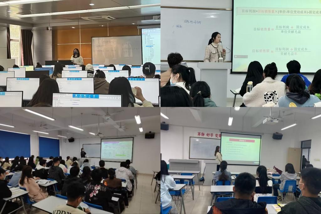 在公开课现场,每位青年教师都展现出了自己的教学风采。例如,李璨老师讲授的《审计综合实验》是一门操作性较强的课程,在学生利用计算机练习的环节,李老师深入到学生中去,认真解答学生的的各项疑问;王晴、张漫、王伟慧老师讲授的《成本管理会计》是一门涉及到大量公式与计算的课程,三位老师通过“案例引入-理论讲授-公式推导-例题演练”的教学方式,让学生理解并掌握每一个知识点,循序渐进、由浅入深。