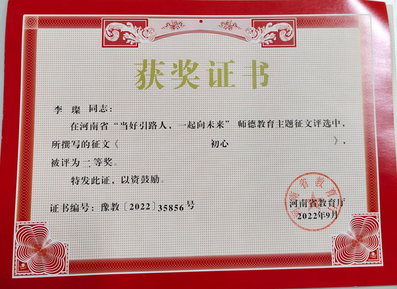 根据全省教育系统“当好引路人,一起向未来”师德主题教育活动安排,我院进行了广泛宣传,鼓励教师积极撰文,开展“当好引路人,一起向未来”师德主题教育征文和师德师风优秀案例评选活动,并组织专家认真评审并积极上报。最终,我院李璨老师在“当好引路人,一起向未来”师德主题教育征文活动中荣获二等奖。