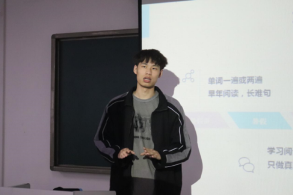 高梽涛同学则以往届生的身份介绍了自己二战的经历,分享了全日制和非全日制的区别,鼓励大家勇敢面对生活中的挫折,勇毅前行。