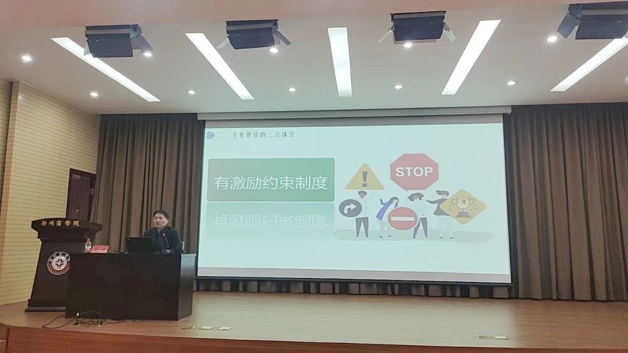 为优先支持商科学院和专业建设高质量发展,提升新商科背景下一流专业建设的水平,11月10日上午,我校邀请河南省国际经济与贸易教指委副主任委员、郑州航空工业管理学院杨波教授做题为“专业建设的三点体会”的专题报告。专题报告在图书馆五楼报告厅举行,会计学院、管理学院和金贸学院的全体无课教师参加了报告会,会议由会计学院院长祝利芳主持。