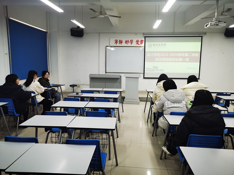 为保证新入职教师课堂教学的顺利进行,提高我院师资队伍教学能力和水平,2024年2月25日下午,会计学院在GE210开展了新入职教师站稳讲台第一课,会计学院院长祝利芳、副院长刘金金、各教研室主任及新入职专职教师等参加了此次活动。