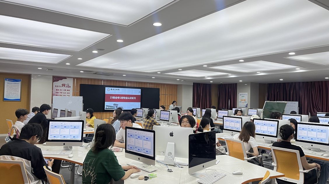 会计学专业的实习方式有两种:一是专家报告,会计学院邀请了河南布利克耐材科技有限公司经理闫小静、巩义市乐算会计服务有限公司资深财务人员张珂娜老师分别以《发掘核心竞争力,打造(职场)个人品牌》、《中小微企业实务业务工作实施路径》为报告主题,从学生核心竞争力的打造和具体业务实施两个角度出发,以提高学生的综合能力。二是智能模拟实验,主要依托新道科技有限公司提供的大数据审计平台开展,该平台内含丰富的案例资源和多功能模块,通过具体实战项目演练,让学生体验数字化技术是如何助力事务所判断能否接受被审计单位的委托以及如何开展风险评估工作,能够在一定程度上增强学生的数字化意识以及对专业知识的理解和应用。