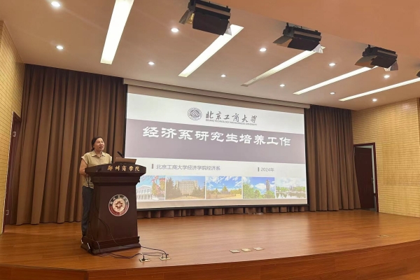 其次,北京工商大学经济学院经济系陈真玲主任对经济学教研室基本情况、学科建设情况、研究生培养情况进行了详细介绍。她还分析了经济学专业人才培养特色与优势,着重就导师队伍、科学研究和就业状况等重点内容进行详细讲解,使同学们的考研方向更加明确。