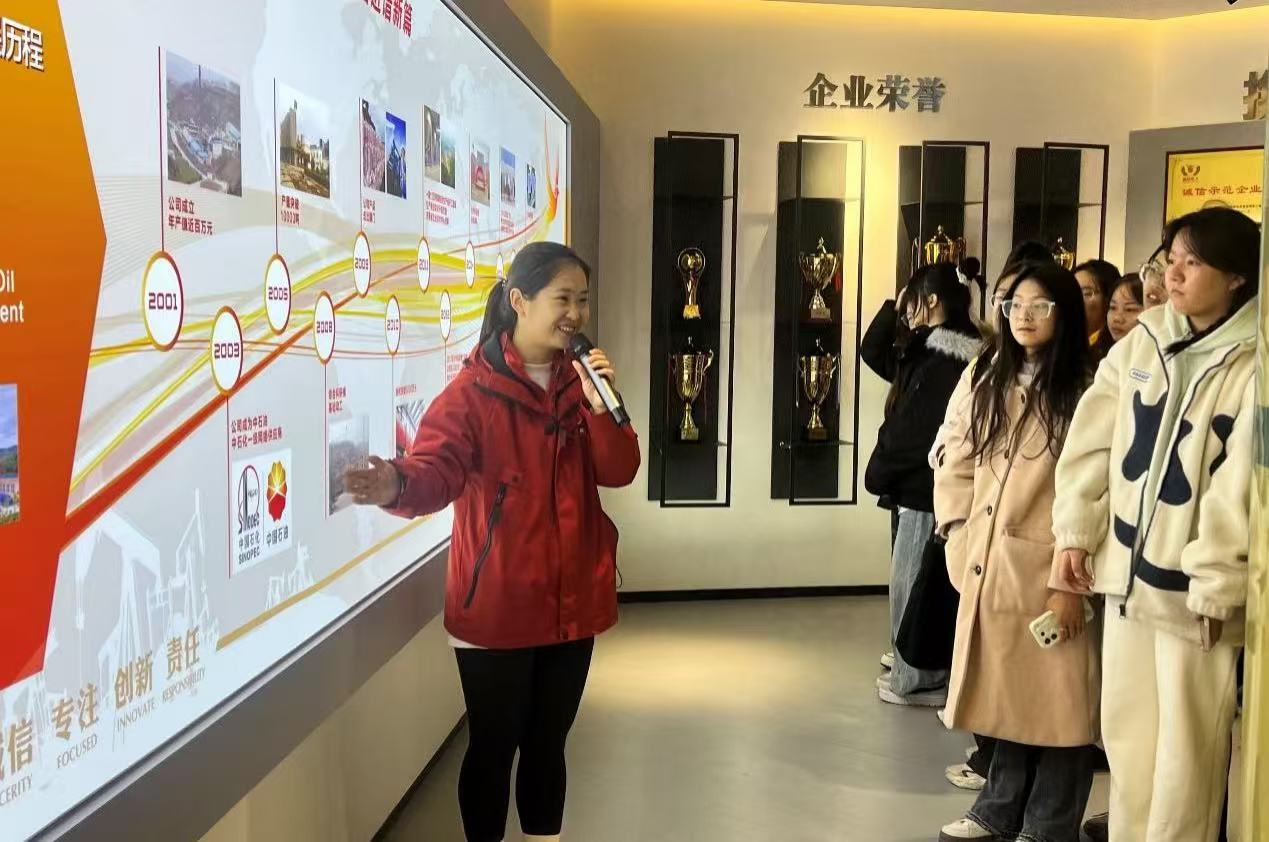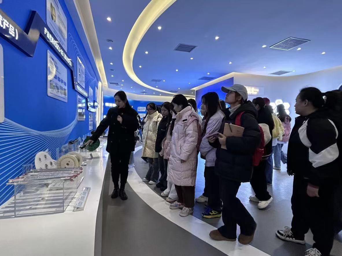 在河南天祥新材料股份有限公司参观学习期间,师生在讲解员的带领下先后参观了企业的实验室和展览馆,了解了天祥新材料的技术研发、创新成果、企业的发展历程与荣誉,以及企业秉承的“诚信、专注、创新、责任”的企业文化,使同学们充分认识了企业的整体业务流程,并切身感受到公司开拓进取、不断创新的精神。