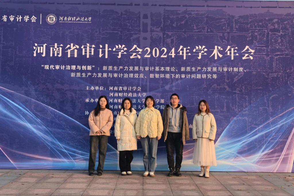 为进一步推进审计学科建设、凸显专业建设特色,促进审计学专业人才培养,会计学院于12月8日受邀参加由河南省审计学会和河南财经政法大学主办、河南财经政法大学审计学院承办的“河南省审计学会2024年学术年会暨河南财经政法大学审计学院揭牌仪式”,我院刘金金副院长及郝晨君、娄鹏震、路潇潇、侯晨波四位老师参加此次年会。