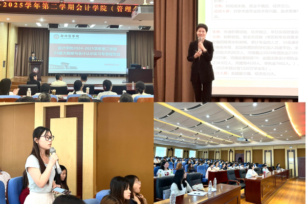 为进一步拓宽学生的专业视野,5月12日下午,我院邀请河南信誉会计师事务所杨晓会所长在图书馆五楼报告厅为2022级会计学(管理会计方向)学生开展了主题为《职业启航与会计未来大学生职业发展及会计行业变革》的专题报告会。会议由郭毅飞老师主持。杨所长从职场角色转型与能力构建、大数据技术赋能审计、审计职场困境与破局之道、职场转型的心态调整和审计行业的未来展望五个方面进行介绍。她结合多年从业经验讲述了求职过程中的注意事项以及心态转换,鼓励学生们多学习新技能,主动适应行业技术变革。