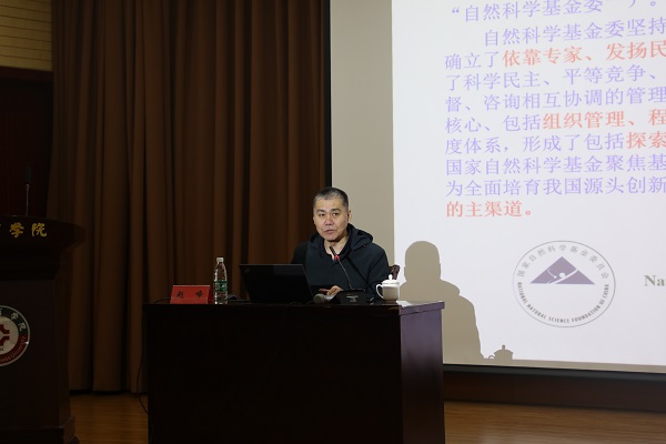 赵峰处长首先对国家自然科学基金委员会的历史沿革、管理办法和组织架构作了简要介绍,并强调了高校加强科学研究的重要性。接着,赵处长从其十多年来从事基金管理工作经验着手,详细讲解了国家自然科学基金项目申报注意事项以及申请书的撰写说明,为与会教师申报此类项目提供了指导和帮助。讲座内容严谨充实、逻辑清晰、通俗易懂,在座教师表示深受启发,不仅对国家自然科学基金的申报有了更清晰的认识和理解,更进一步增强了科研信心。最后,赵处长指出,创新是灵魂,研究基础是支撑,研究方案是手段,而撰写则是一票否决权,希望各位老师能以此次讲座为起点,提早谋划、精心准备,早日在自然科学基金项目中取得突破。