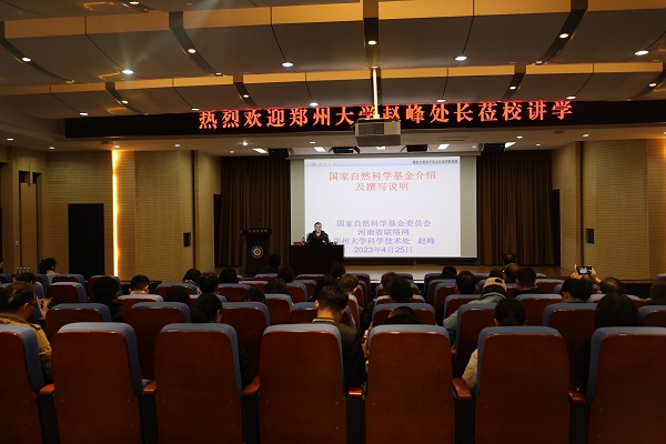 为深入开展学习贯彻习近平新时代中国特色社会主义思想主题教育,进一步落实期初全体教职工大会和教学科研工作大会精神,持续推进构建“学术郑商”进程,营造浓郁科研学术氛围,激发我校教师科研积极性,提前谋划国家自然科学基金项目申报工作,提高项目申请书撰写质量,拓宽项目申报渠道,4月25日上午,我校特邀请国家自然科学基金河南联络网组长、郑州大学科学技术处赵峰处长,在图书馆5楼学术报告厅作了题为“国家自然科学基金介绍及撰写说明”的学术讲座。科研处同仁及我校部分中青年教师聆听了此次讲座。