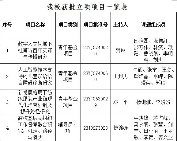 据悉,教育部人文社会科学研究项目是我国人文社科研究领域层次最高、最具权威的项目类别之一,是衡量高校人文社科研究水平的重要指标。项目由教育部统一组织申报、评审,评审过程一贯秉承公平竞争、择优资助的原则,公信力、认可度较高,一直以来受到各级各类高校的高度重视。