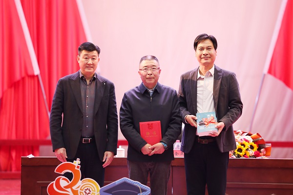 党委书记吴建军为金正昆教授颁发了客座教授聘书,金教授为我校赠送了《商务礼仪》等书籍。