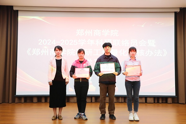 会上,表彰了2023-2024学年优秀科研联络员,聘任了2024-2025学年校属各单位科研联络员。优秀科研联络员代表,管理学院张倩丽老师作了经验分享、新聘科研联络员代表,文传学院荀陶老师作了表态发言。科研处刘灿科长、陈晓丽老师分别为优秀科研联络员及新聘联络员颁发了荣誉及聘任证书。