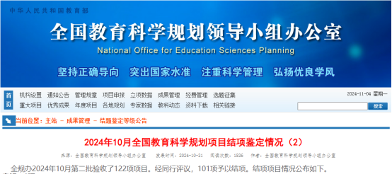 全国教育科学规划课题旨在推动中国教育学学科体系、学术体系、话语体系建设,推进中国教育学自主知识体系构建,更好服务教育强国建设。同时,也是体现高校教育科学研究水平的重要课题类别,历来是我校高度重视的国家级申报项目之一。本项课题的顺利结项是我校科研工作的又一历史性突破,标志着我校科研水平迈上了新的台阶。下一步我校将持续发挥有组织科研效能,重视高级别项目申报立项、实施工作,充分发挥好已获批全国教育科学规划课题的示范引导作用,推动我校科研持续高质量发展。