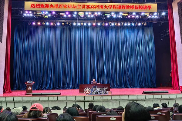 11月19日,“学术郑商”大讲堂开讲,央视《百家讲坛》主讲嘉宾、河南大学文化旅游学院教授、博士生导师程遂营莅临我校作了题为“北宋帝王与宋代文化”的专题报告。党委书记吴建军、副校长张江涛、部分主管和我校2000余名师生共同聆听了报告。