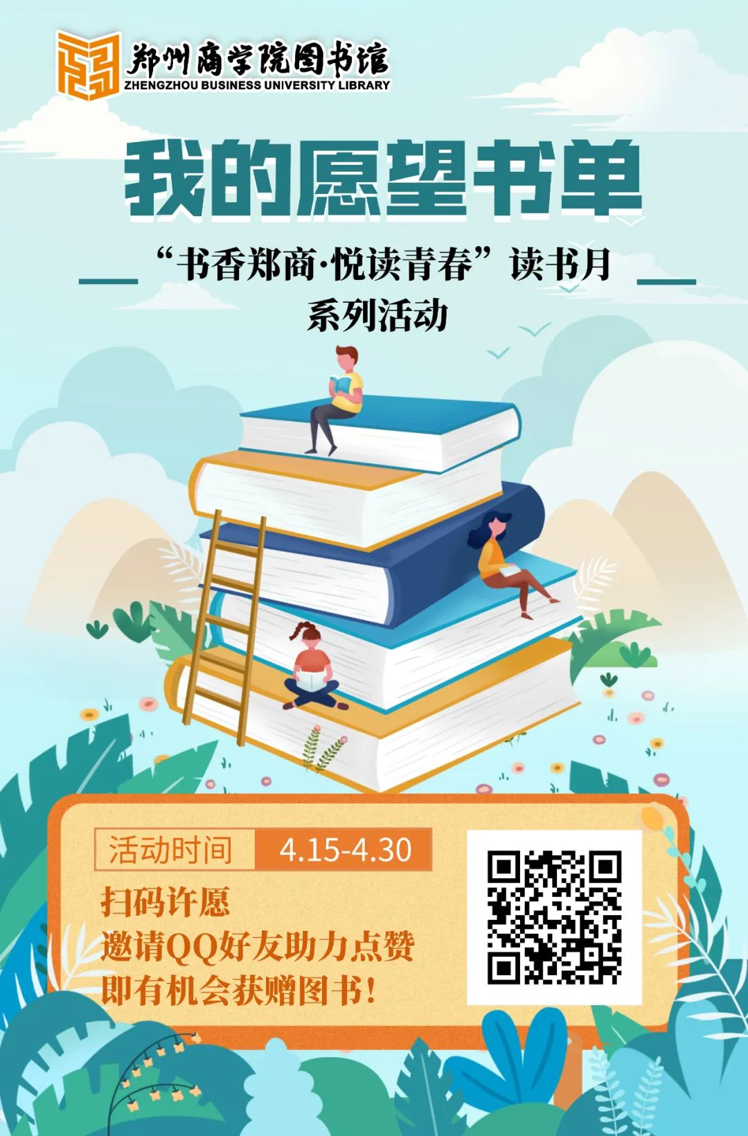 为满足郑商读书人个性化的阅读需求,图书馆现推出“我的愿望书单”征集活动。现将活动相关事项通知如下: