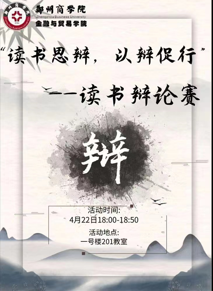 为建设优良学风,丰富同学们的课外活动,培养其思辨能力和语言表达能力,秉承我读故我思、我思故我辩的求是精神,金贸学院于4月22日开展“读书思辩,以辩促行”读书辩论赛。通过此次辩论赛活动,进一步激发了学生主动参与的积极性和主动性,营造了以赛促学、以学促用的良好氛围。