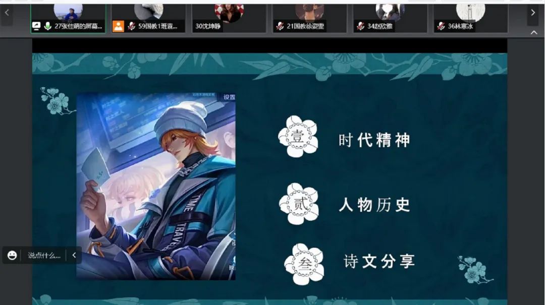 9月1日,文传学院为烘托班级阅读氛围,打造更具特色的书香班集体,于线上开展“文史大碰撞”书香活动。同学们通过制作与文学历史人物相关的PPT形式宣传书中人物的正面精神,增强了班级整体阅读意识,凝聚了班级书香精神。