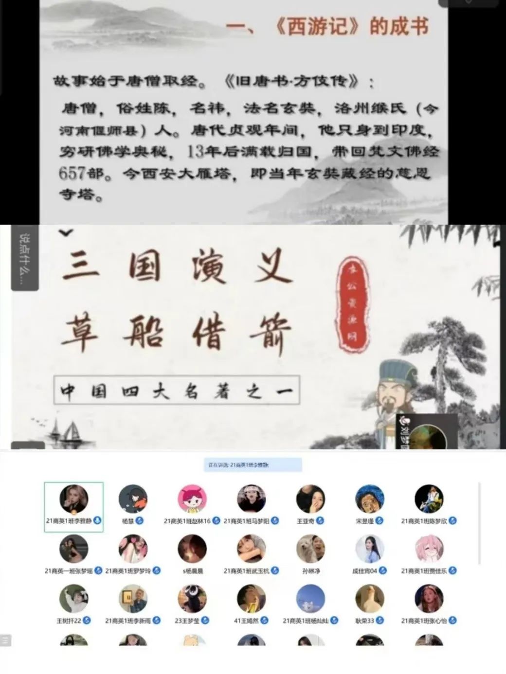 名著是历史天空中璀璨的星辰,凝聚着前人智慧的光芒;名著是岁月长河中晶莹的水滴,折射着时代动人的光彩。为了推进我校“书香校园阅读经典工程”建设,激发学生阅读古典名著的兴趣,外国语学院于9月14日开展“读古典名著,品百味人生”读书分享会活动。活动过程中,同学们畅所欲言,表达自己的读书感受。通过本次读书分享会,不仅增添了我院浓厚的书香氛围,也提高了同学们阅读古典文学的兴趣。