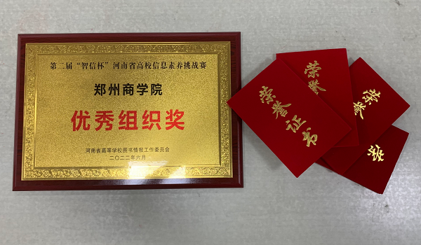 9月22日下午18:00,图书馆在五楼多功能厅开展了“智信杯”河南省高校信息素养挑战赛颁奖典礼。为提升我校学生信息素养水平,以赛促学,图书馆组织我校学生参加了由河南省图工委发起的第二届“智信杯”河南省高校信息素养挑战赛,这是我校首次参与此类赛事,省内本科高校组高校共计43所参加。我校有950名学生参加比赛(参赛人数位列参赛高校第1名),通过复赛我校最终荣获优秀组织奖,并有4人取得省级奖励。