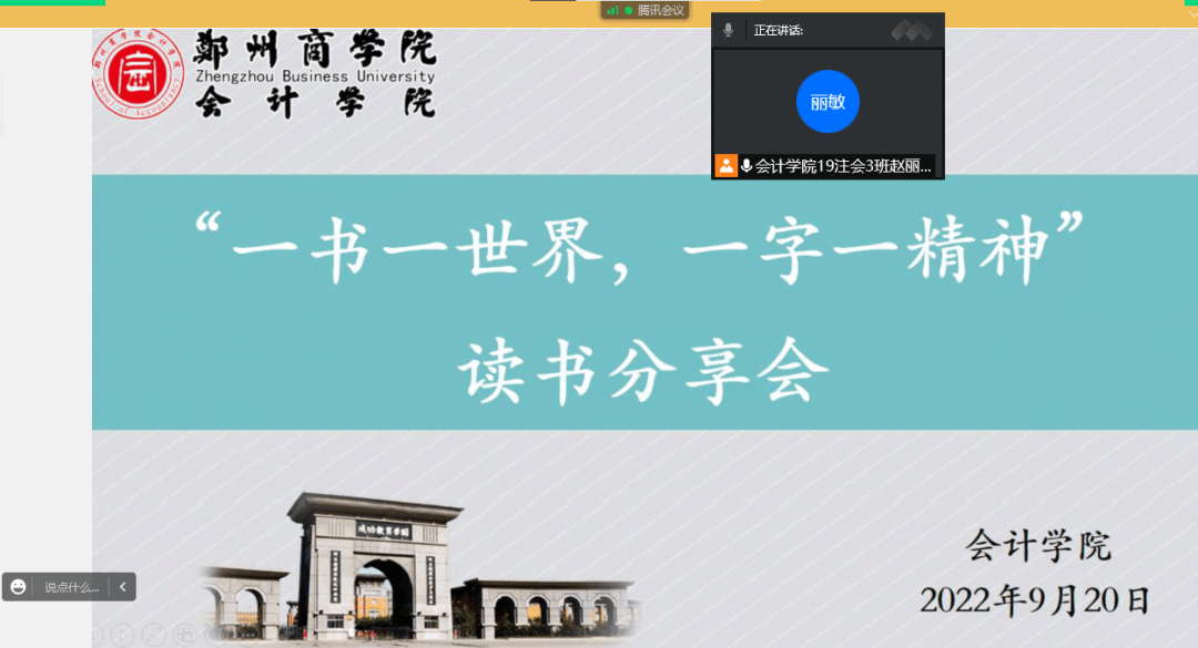 最是书香能致远,腹有诗书气自华。为了进一步推进书香校园阅读经典工程建设和落实疫情防控要求,会计学院举办“一书一世界,一字一精神”读书分享活动。活动过程中,同学们畅所欲言,表达自己的所思所想、所感所悟,鼓励大家不断阅读,不断思考。
