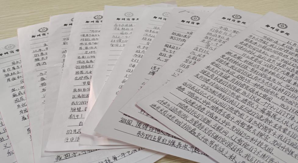 为打造红色郑商,以书香渲染爱国情,激发青年学生爱国主义情怀,加强校院班三级联动,在国庆节来临之际,校学术部开展“天耀祖国,不负韶华”国庆征文活动,工商学院积极配合,同学们积极参与,进一步弘扬了爱国主义精神,充分体现了我校学生的爱国情怀以及积极进取的人生态度,有利于激发郑商学子阅读红色书籍的兴趣,营造浓厚的书香校园氛围。