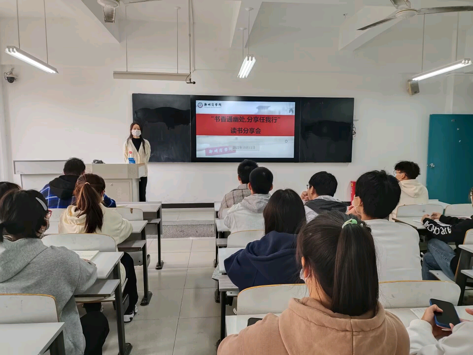 经典不朽,书香永恒。为了落实我校三大教育两大工程,培养学生读经典、悟经典的能力。金贸学院10月11日中午在一号楼206教室开展“书香通幽处,分享任我行--品读经典”读书分享会。此次分享会,同学们更加深刻了解到了经典名著的魅力,从交流与分享中提升了自己的文学素养,从经典名著中学习到了更多智慧与经验。