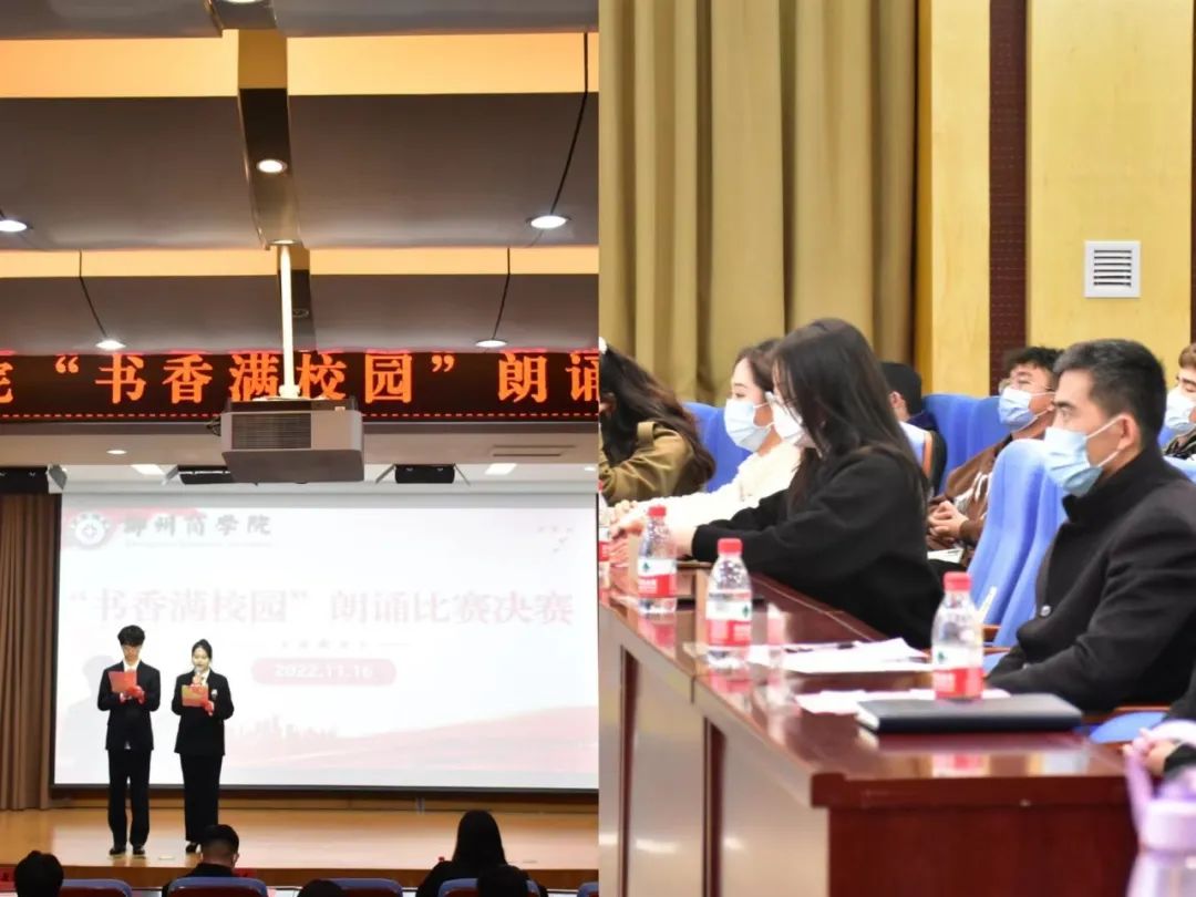 为更好地抒发爱国情怀,提高全体师生的爱国意识,共建红色郑商,外国语学院于11月16日在图书馆五楼报告厅举办了以“书香满校园”为主题的朗诵比赛。比赛中,参赛队员满含深情、精神饱满、朝气蓬勃,时而娓娓道来,时而声情并茂,一句句激昂飞扬的誓言吐出了时代的豪迈,诵出了当代大学生的自信。各参赛队员的朗诵犹如一曲曲积极向上、充满责任担当的赞歌,让台下的人产生了强烈的情感共鸣。本次活动的成功举办,不仅增强了广大师生热爱祖国、诵读经典、传承经典的意识,而且推动了我校“书香校园阅读经典工程”的建设。