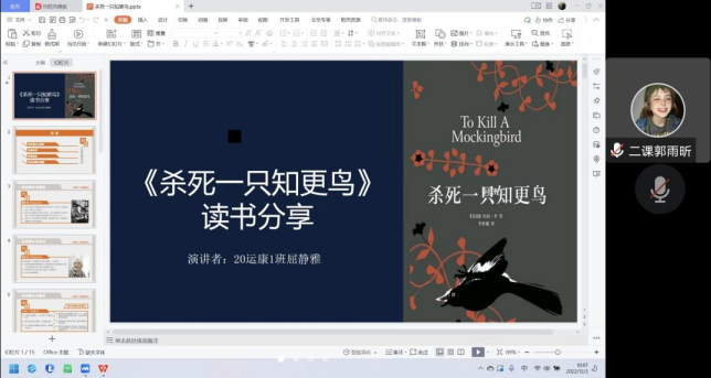 为践行我校书香校园阅读经典工程,丰富学生的寒假生活,提升学生的文学素养,外国语学院于2月10日开展“百年呼啸,一生阅读”线上读书分享会。本次活动为同学们提供了一个自由活跃开放的读书交流平台,不仅拓宽了同学们的视野、提升了学生的文化素养与阅读水准,而且帮助同学们在阅读中寻找翻译的乐趣、提高专业素养,打造郑商特色书香校园文化。