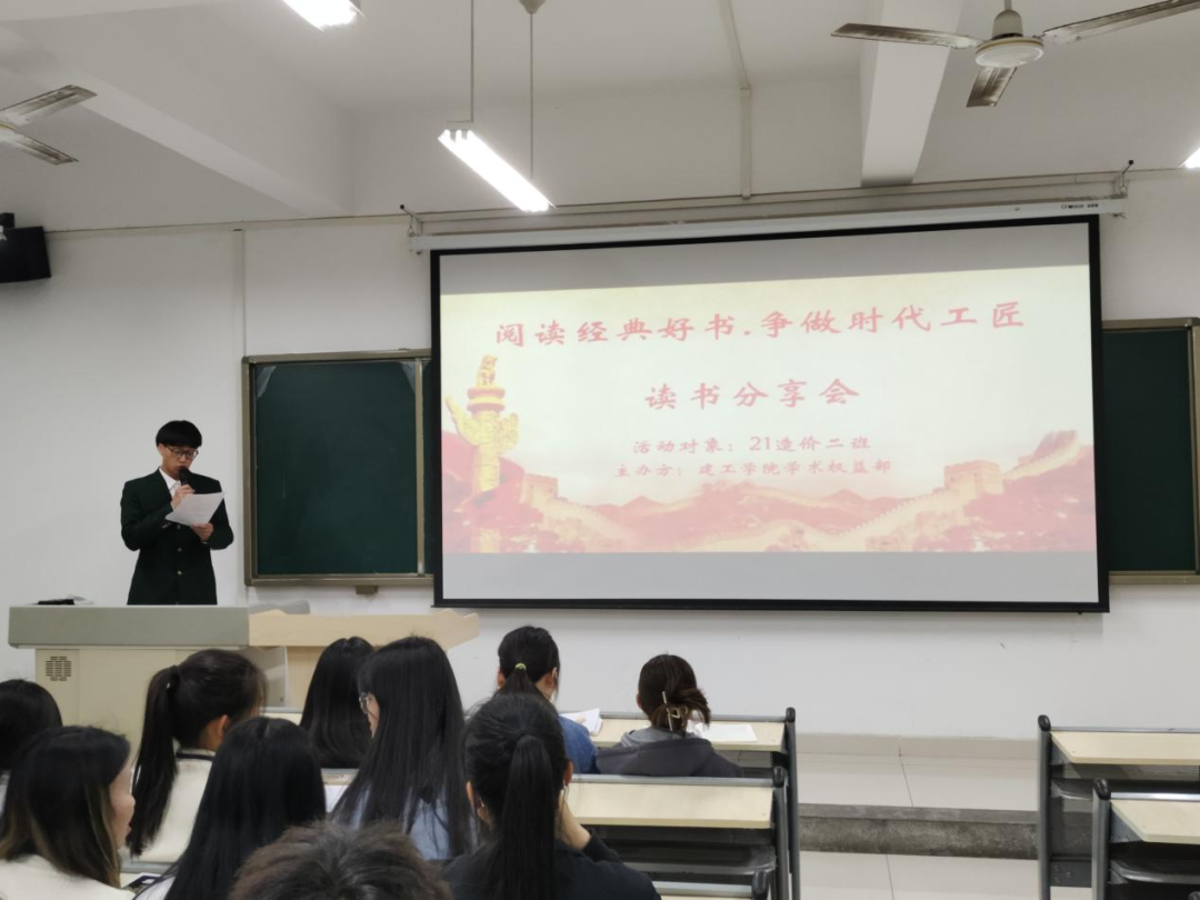 “读书无嗜好,就能尽其多。不先泛览群书,则会无所适从或失之偏好,广然后深,博然后专”。为贯彻落实全员阅读,营造建工学院良好的书香氛围,3月8日晚,21级造价2班开展了“大国工匠”系列主题读书分享会。活动旨在让同学们通过阅读认识更广阔的世界,在提升境界的同时,扩大自己的格局,通过书籍中的故事品味自己的人生。