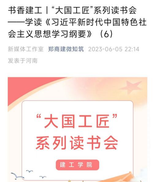 为加强校园文化建设,营造浓厚的书香氛围,全面推动书香校园阅读经典工程,6月5日,建工学院“大国工匠”系列读书会继续分享《习近平新时代中国特色社会主义思想学习纲要》,分享人是22造价1班李铮同学,节选了书中精华的部分并为大家带来了深刻的读后感。