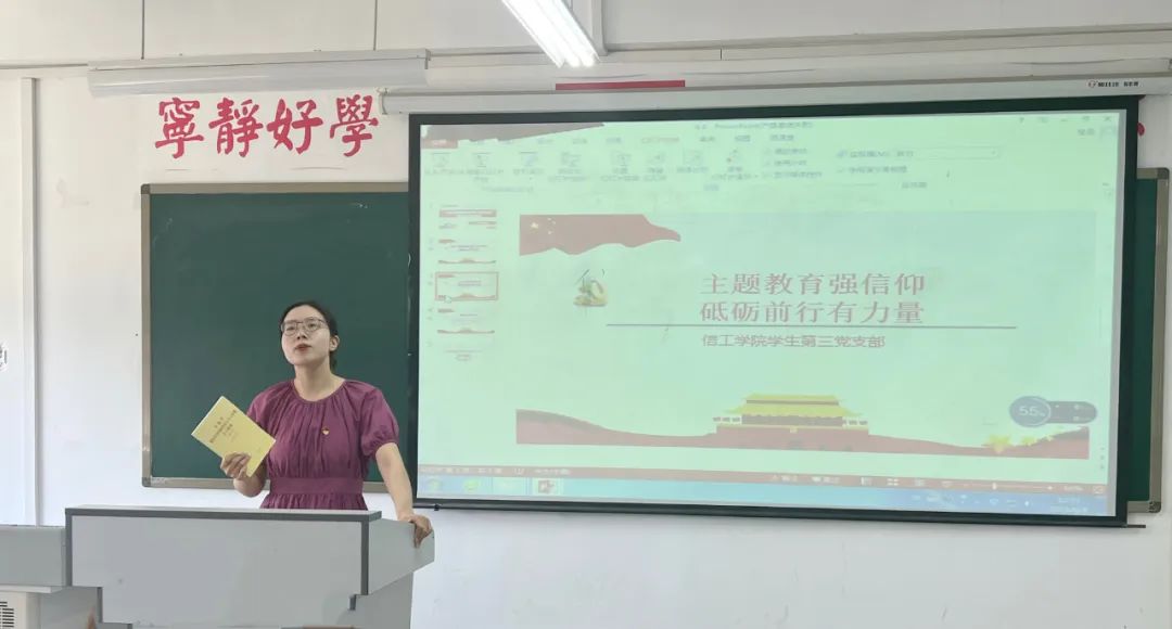 6月14日,信工学院学生第三党支部开展了学习红色书籍主题教育读书会。支部书记对本次主题教育读书会做出了点评,要求新时代的青年党员必须要强党性,即锤炼党性,在真学、真信、真用中坚定理想信念。其次,还要重实践,即要自觉践行习近平新时代中国特色社会主义思想,并用以观察时代、把握时代、引领时代,推动中国式现代化取得新进展、新突破。