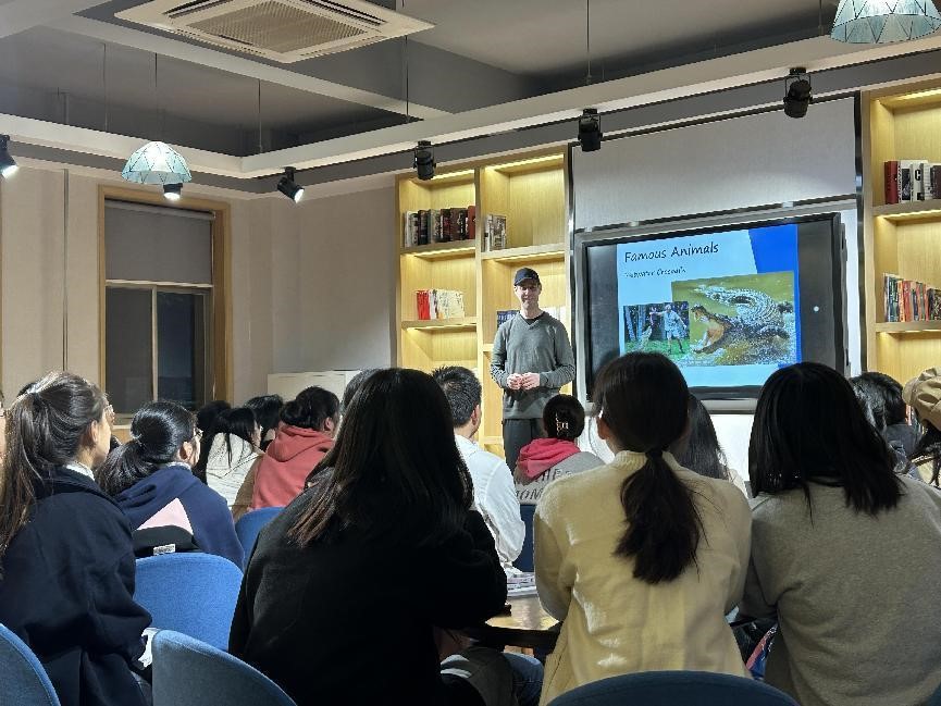 活动过程中,外教Carl介绍了澳大利亚的人文地理风貌,并向同学们展示了别样的异国风光,提高了同学们的跨文化知识水平。在自由对话环节,同学们热情高涨,积极踊跃发言,使自身的英语口语能力得到了很大的提升。本次活动为同学提供了与外教交流的平台,不仅丰富了课余生活,更营造了我校良好的学习氛围。