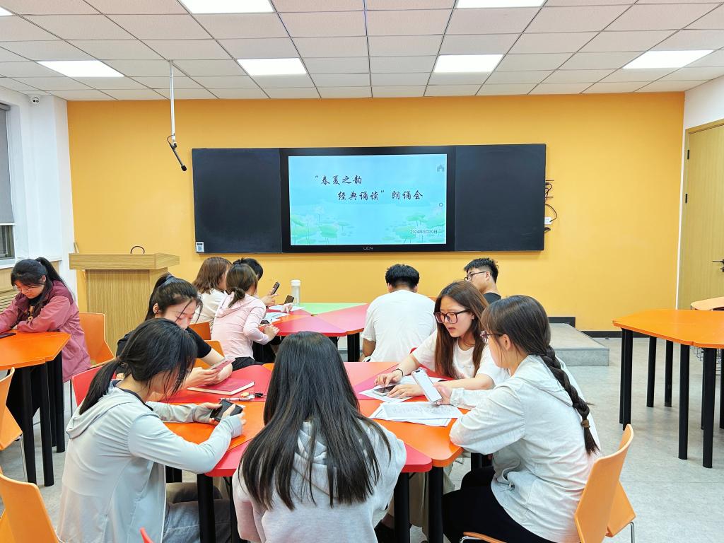 随着春夏交替之际的到来,外国语学院于5月30日晚在W114举办了一场以“春夏之韵,经典诵读”为主题的朗诵会活动。本次活动旨在通过诵读经典文学作品,让同学们们在欣赏语言文字之美的同时,感受春夏之交的独特韵味,进一步弘扬中华优秀传统文化,提高大学生的文学素养和语言表达能力。