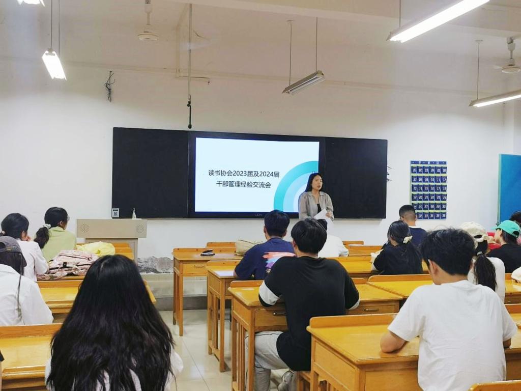 为更好落实书香校园阅读经典工程建设相关工作,艺术学院于2024年5月27日在艺术楼举办读书协会2023届及2024届干部管理经验交流会。交流会中,社长沈英从工作分工、图书室管理章程、干事管理制度等方面进行详细讲解。副社长管超从活动举办流程、新闻推送管理和编写制度、班级活动检查工作等方面进行介绍。最后,书香校园阅读经典工程负责老师唐薇表达了对今年工作的认可,并鼓励2024届干部继续努力,打造好艺术学院的书香校园阅读经典工程品牌。