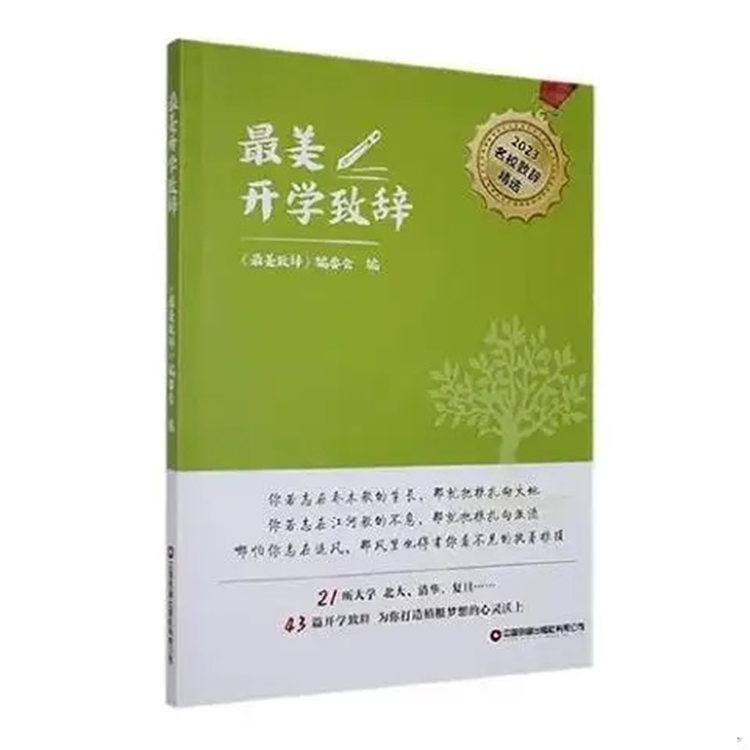4.推荐理由:本书精选2023年全国各大高校校长、教师代表、校友代表、学生代表开学致辞中具有代表性的篇章,由42篇汇编而成。内容涉及鼓励新生在大学中追求知识和梦想,勇于尝试并选择适合自己的专业领域等,体现出了高等教育的多样性和包容性。同时,本书旨在传达高等院校作为学术和个人成长的强大支持者的声音,鼓励青年学子勇于进取、探索真知。