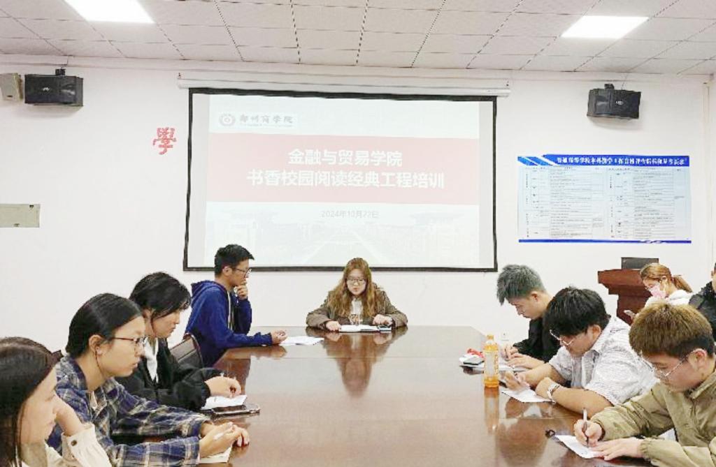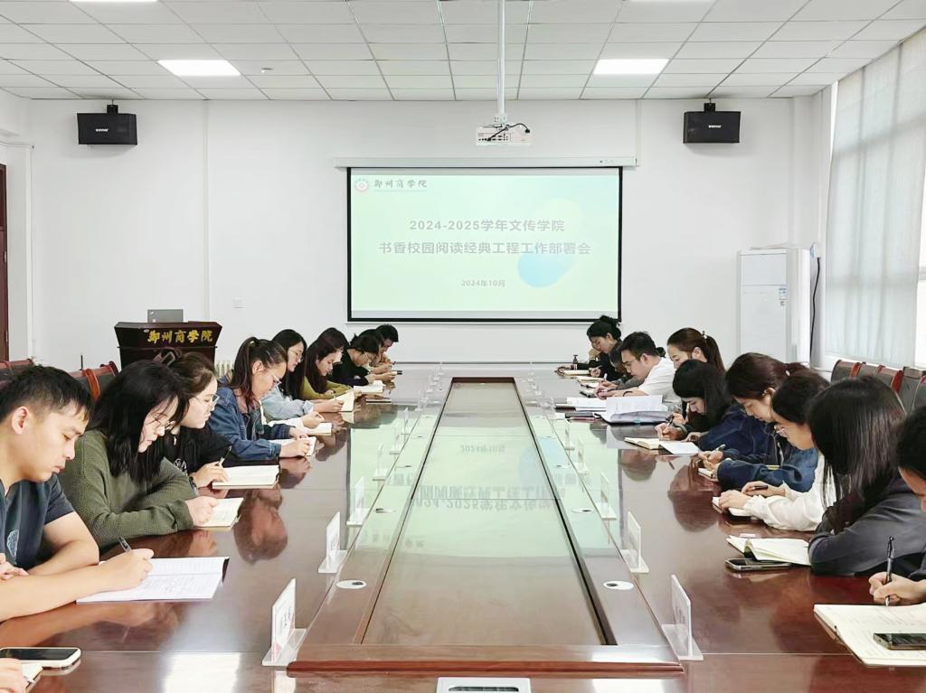 文传学院围绕“阅读时代经典 共建书香郑商”主题,举办2024-2025学年书香校园阅读经典活动启动仪式,党委书记贾蓓、团委书记王凯及全体辅导员老师共同参加。贾蓓书记对《2024-2025学年书香校园阅读经典工程实施方案》进行了深入解读,要求全体辅导员老师认真学习工作方案,确保阅读学分落到实处,随后对本学年学院书香工作进行了全面部署,提出要继续构建品牌阅读活动,不断创新活动形式,扎实推进学院书香建设。