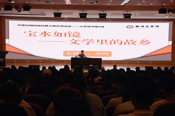 5月26日,书香校园阅读经典工程系列讲座——“大家讲书”第四讲在图书馆一楼国际报告厅成功举行。北京作协副主席、北京老舍文学院一级作家乔叶老师莅校作题为“宝水如镜——文学里的故乡”的专题讲座。我校党委副书记兼纪委书记裴晓涛、巩义市作协主席侯发山、巩义市作协部分作家与我校600名师生共同聆听报告。