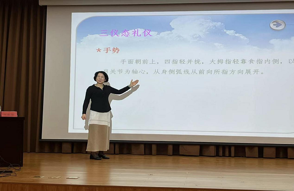 此次分享,任焕琴教授运用各种生动形象的案例对《现代商务礼仪》中基本的商务礼仪形式如微笑礼仪、着装礼仪、馈赠礼仪和宴请礼仪等,从价值观、语言运用习惯、行为语言等文化视角进行探析,使同学们深刻理解商务礼仪的重要性,并亲身示范“站姿”和“坐姿”,纠正同学们不规范的坐姿行为。商务礼仪趣味性和实用性较强,同学们全神贯注,倾听教授的讲解,印象深刻。