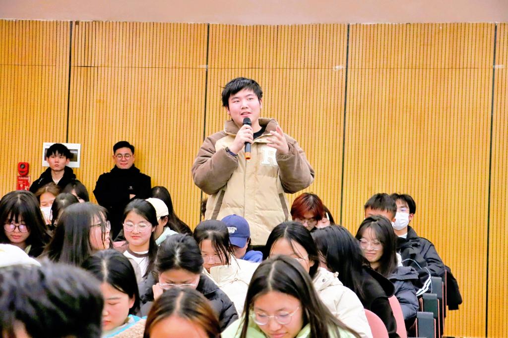 史丽娟老师深刻阐述了演讲与口才在当今社会的重要性,指出无论是在学术研讨、职场竞争还是日常生活中,出色的演讲与表达能力都是不可或缺的软实力,随后结合自身经验和生动案例,向听众们传授了演讲的基本技巧、语言表达方法、肢体语言运用等实用知识,并强调了情感传递和与听众互动的重要性。通过实例分析与现场互动,让同学们深刻理解了这些技巧在实际演讲中的灵活应用。