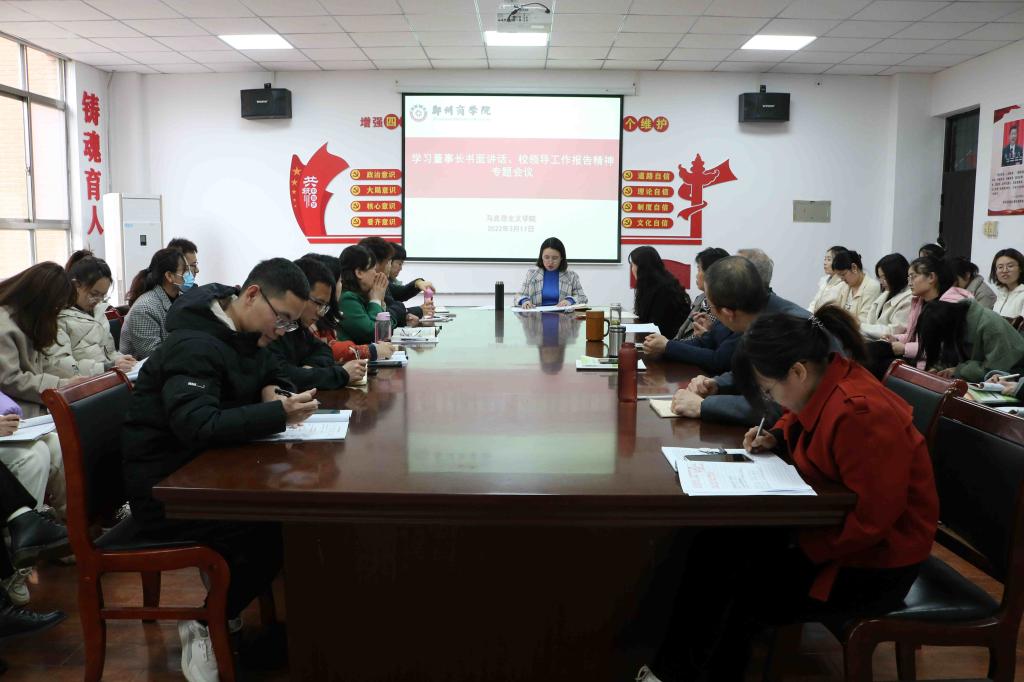 为深入学习贯彻董事长书面讲话、校领导学校工作报告精神,把握工作方向,使全体教师以饱满的热情和崭新的姿态迎接新学期工作,3月17日下午,我院在会议室召开期初专题学习会议,我院张党诺院长和全体无课教师共同参加了此次会议,会议由张党诺院长主持。