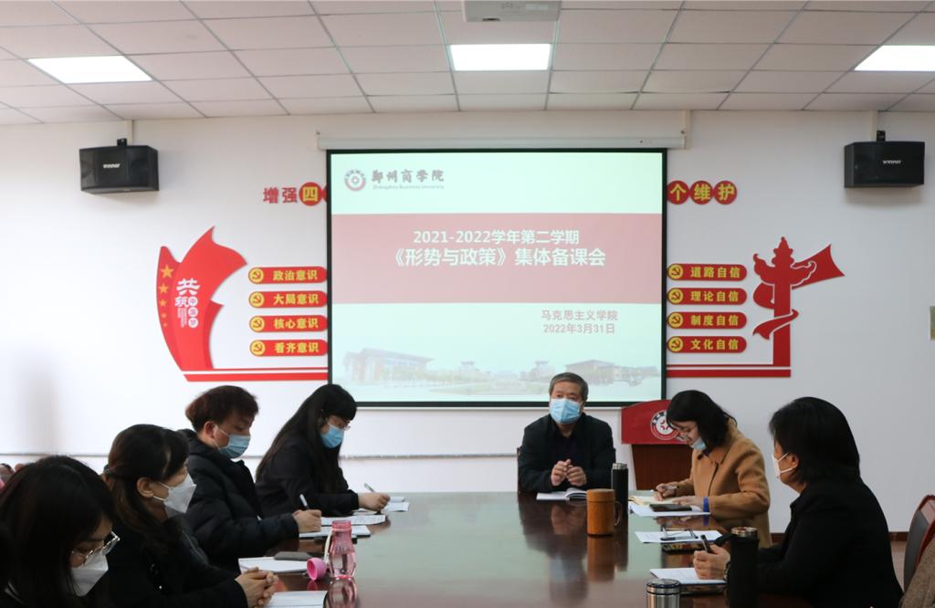 为打造高效课堂,提升教学质量,马克思主义学院于2022年3月31日下午在会议室召开第二次形势与政策集体备课会。此次集体备课会由院长张党诺主持召开,全体无课教师参加。