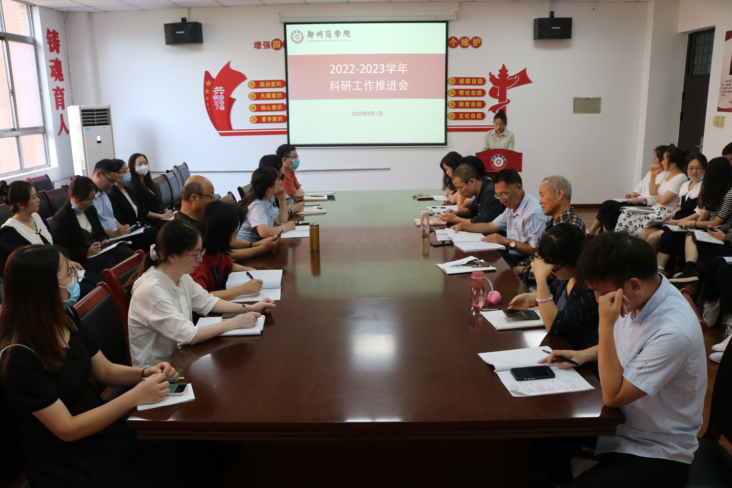 为调动教职工的科研积极性,重视科研工作,扩大学术影响,推动学科建设向更高质量发展,9月1日下午,我院在会议室召开了2022-2023学年科研工作推进会,全体无课教师参加了此次会议。