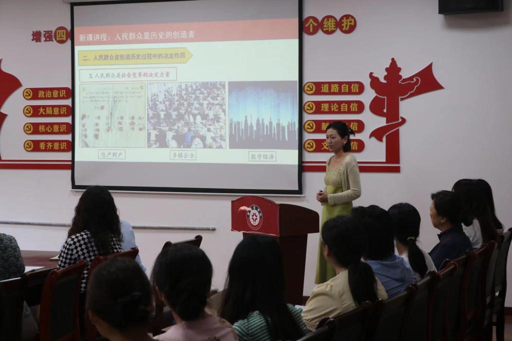 其次,段丽肖老师作为优秀青年教师代表,率先进行“每人一精品、每周一展示”的示范教学展示活动。段老师以“人民群众是历史的创造者”为主题,语言语调抑扬顿挫,极具感染力地为全体我院教师进行了一场精彩的展示。
