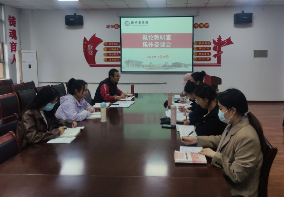为营造良好的教学研究氛围,增强教师合作意识,10月29日下午,“概论”教研室在我院会议室开展集体备课会。本次会议由教研室主任录柯主持,教研室全体教师参会。