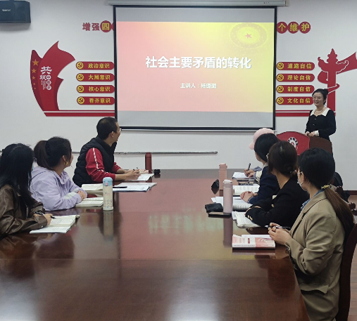 随后杨璐璐老师进行“一周一精品”课堂展示“社会主要矛盾的转化”,分别从历史之维、现实之基和辩证之要三方面来分析社会主要矛盾的变化。录柯主任及众多老师纷纷点评,录柯主任指出展示过程中所出现问题并提出建议,可适当增加案例填补教学内容的空缺,要懂得抓住听课人的眼球,王晓楠、蒋晓慧等老师就个人经验纷纷建言献策。